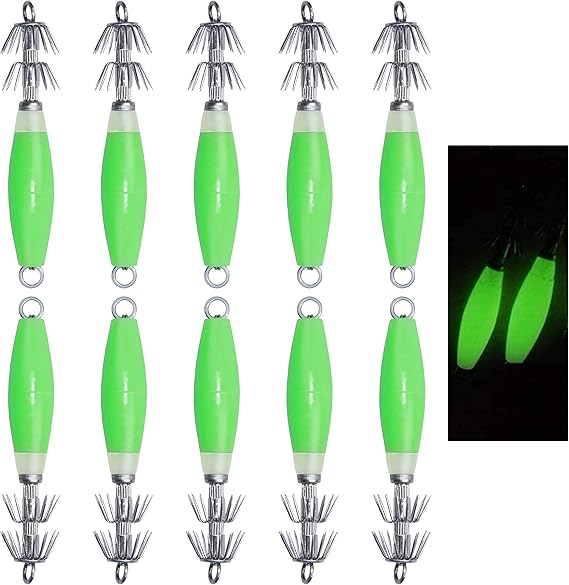 - π LONGER LUMINOUS TIME: With a glow-in-the-dark body made specifically for squid fishing. After absorbing light, the squid jig hooks will have the effect of night light in the dark, so that it will attract squid. The luminous time of our fluorescent bodies is longer than that of others.
